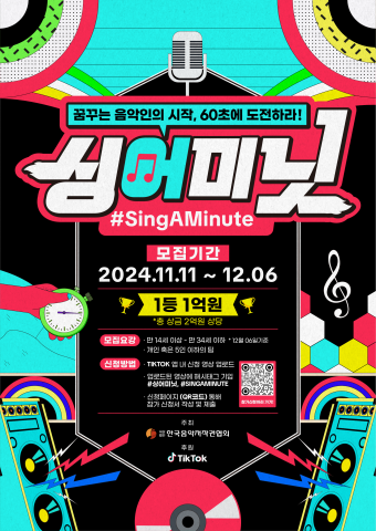 Çѱ¹À½¾ÇÀúÀÛ±ÇÇùȸ°¡ ÁÖÃÖ¡¤ÁÖ°üÇÏ°í Æ½ÅåÀÌ ÈÄ¿øÇÏ´Â »õ·Î¿î °³³äÀÇ 1ºÐ °¡¿äÁ¦ ¡®½Ì¾î¹Ì´Ö(#SINGAMINUTE)¡¯ÀÌ ½ÃÀ۵ȴÙ.